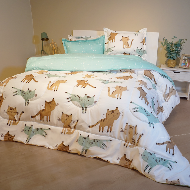 Es ideal para todo el año, brindando confort sin generar calor excesivo, gracias a su tejido ligero y acolchado balanceado.
